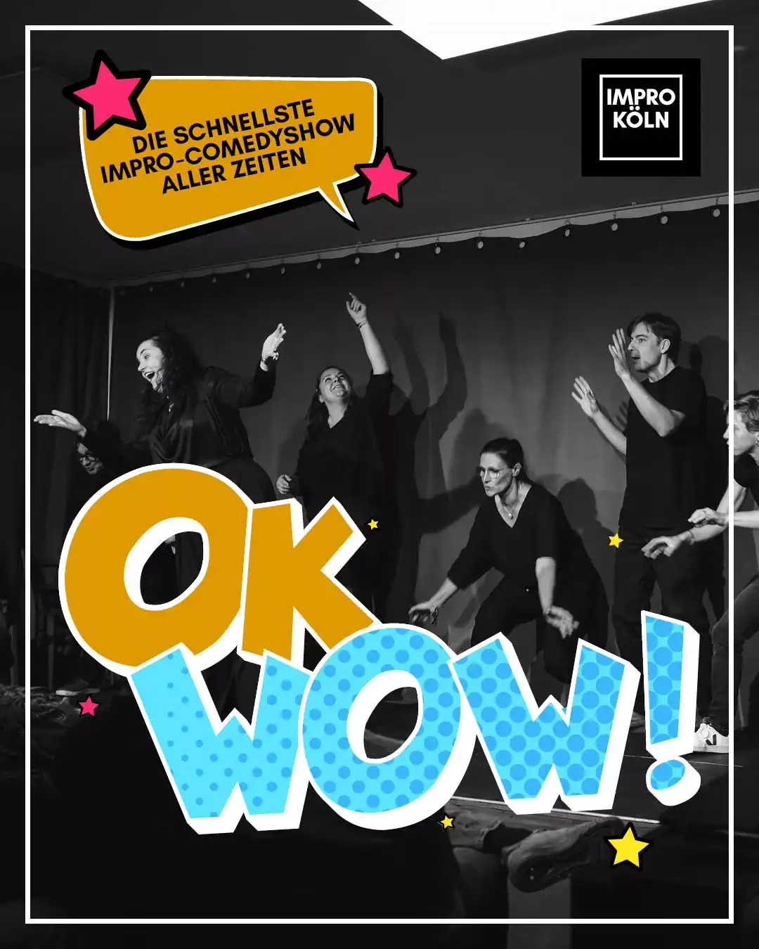 Das Profi-Ensemble von Impro Köln steht mehrmals in der Woche auf der Bühne und zeigt euch innovative Comedy-Formate – garantiert einzigartig.