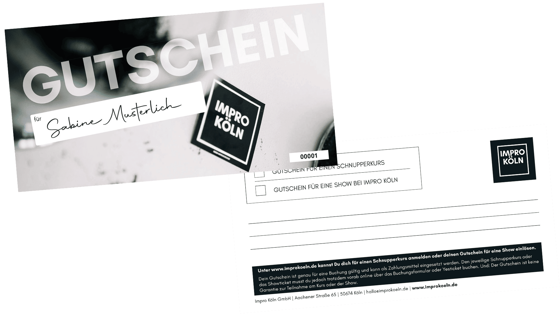 Und: Wenn Du einen Gutschein für eine Show kaufst, schreib uns doch bitte eine Mail an kurse@improkoeln.wpentwicklung.com mit dem Namen der Show, dem Namen des Schenkenden und / oder Rechnungsnummer) und wir senden Dir dein Ticket zu.